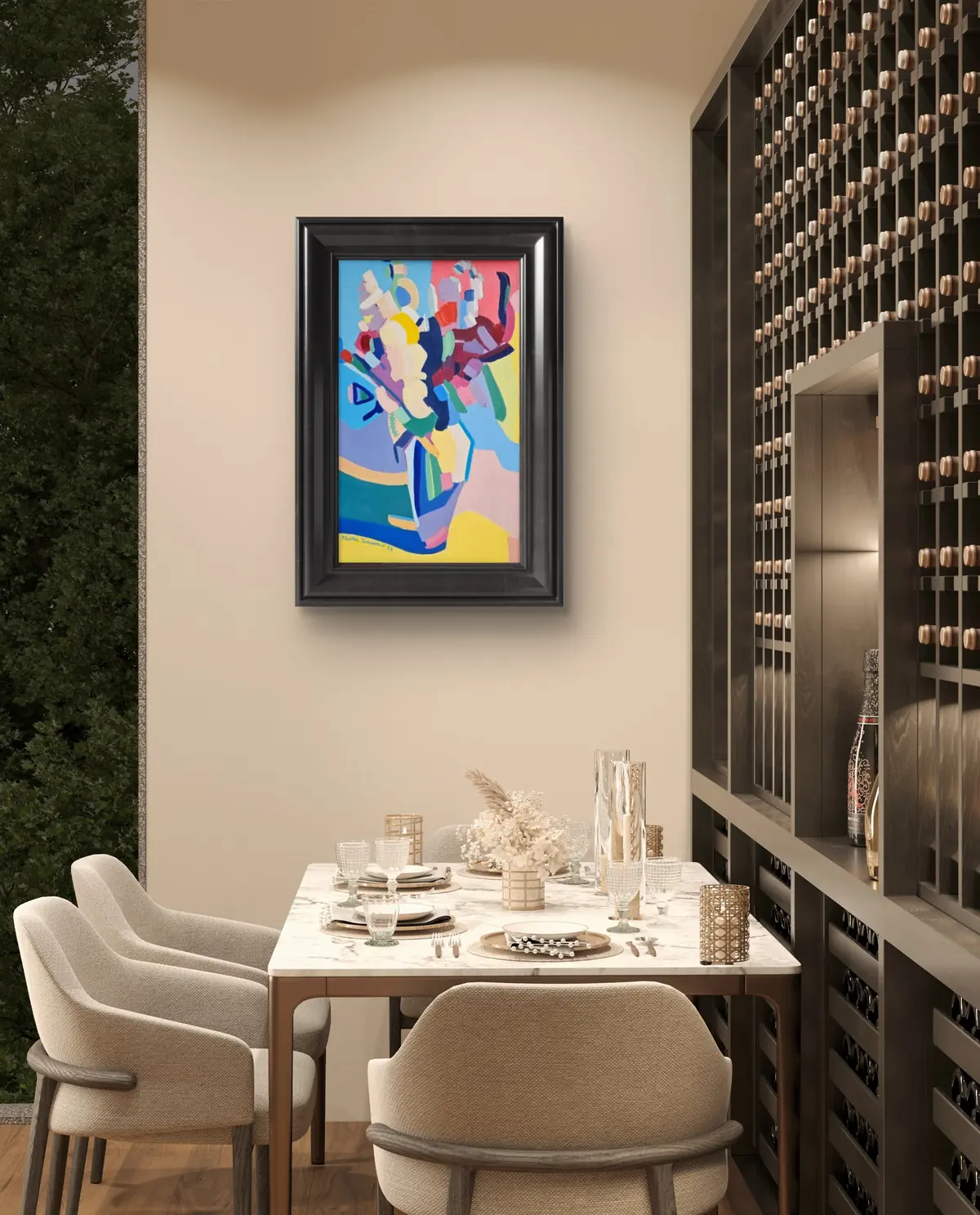 Menší formát, soustředěná barevnost a radost z detailu. Kytice vznikla jako oslava tvarů a barevných kombinací, které příroda nabízí. Je to hravý, lehký obraz, který dokáže rozsvítit i klidnější interiér.