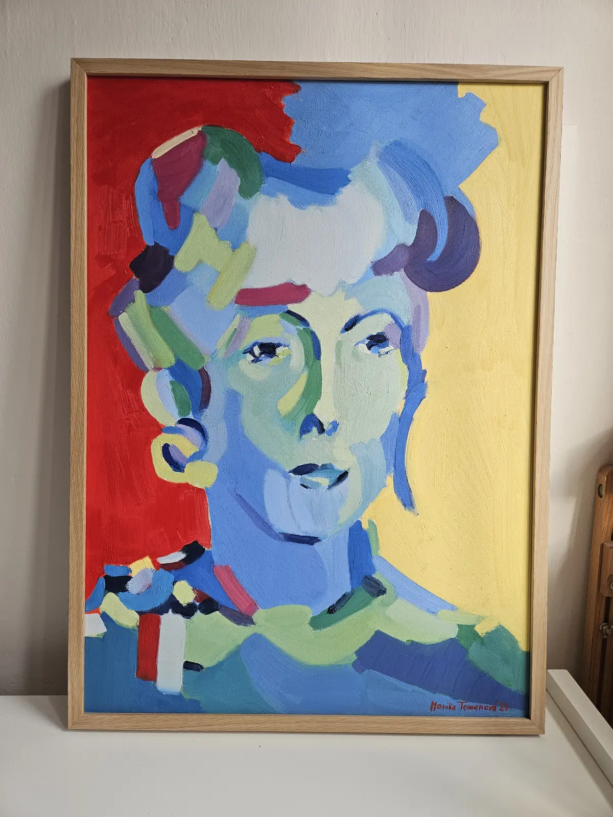 Obraz Presumida vznikl ze studijní práce portrétu a připomíná, že i za přísnou tváří se může skrývat hravá, živá osobnost. Jemné nuance výrazu a kontrast mezi vážností a hravostí vybízí diváka k vlastní interpretaci a objevování skrytých vrstev charakteru.