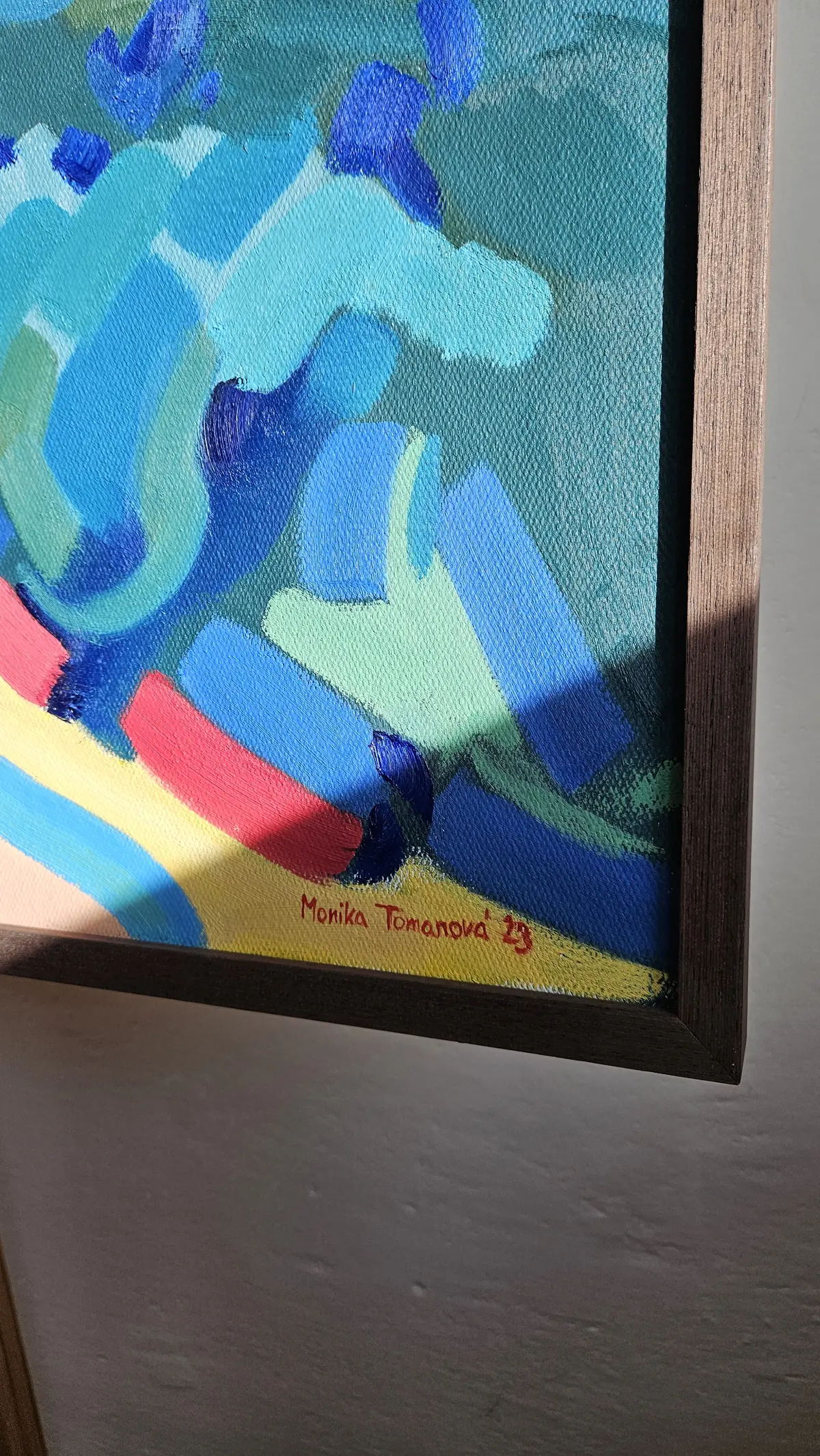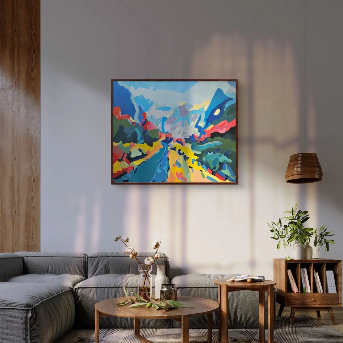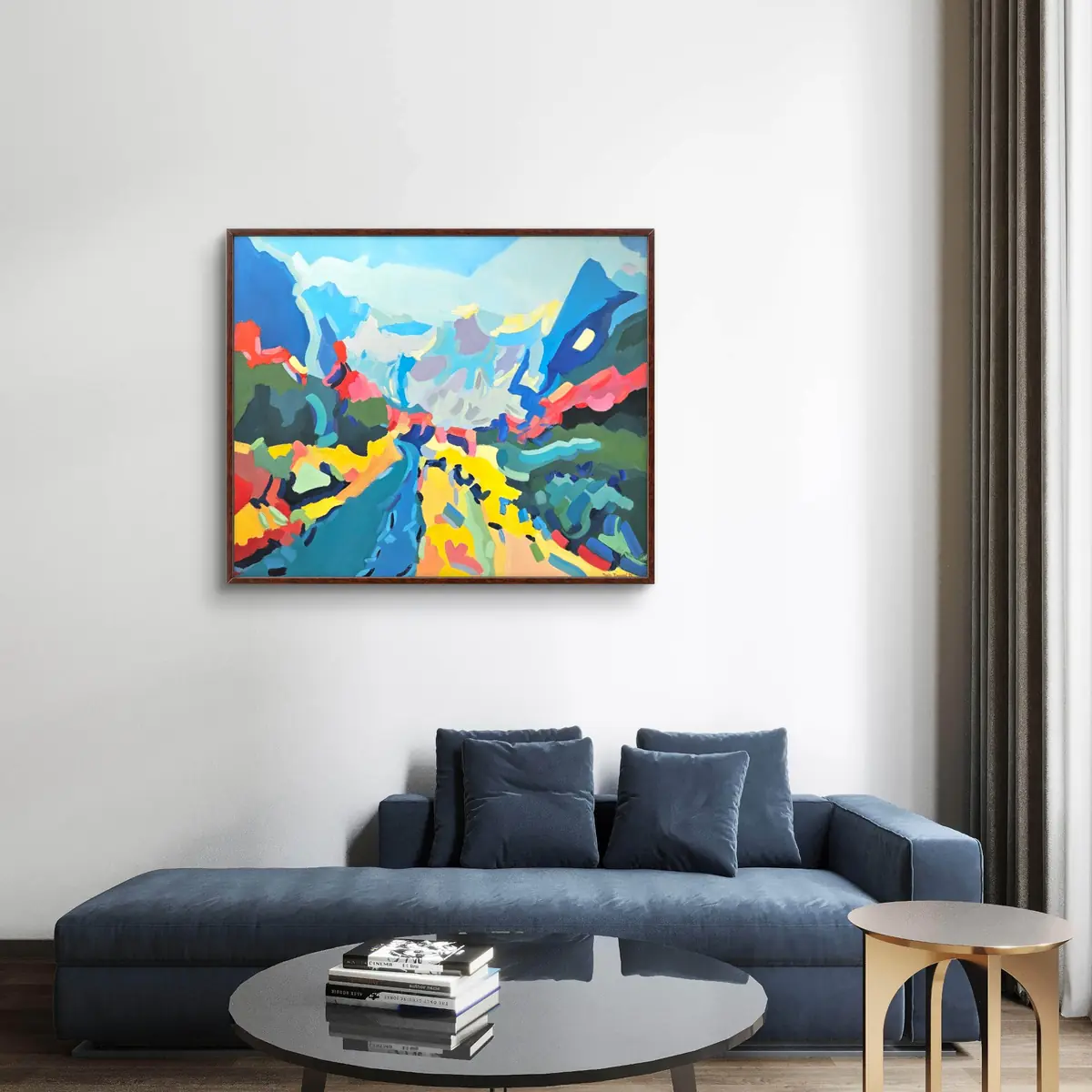 Vysokohorská krajina zde není realistickým záznamem, ale barevným prostorem. Stezka i horizont jsou zjednodušené, barvy posunuté a intenzivní. Obraz pracuje s pocitem otevřenosti a vzduchu. Je to krajina, která dýchá barvou.
